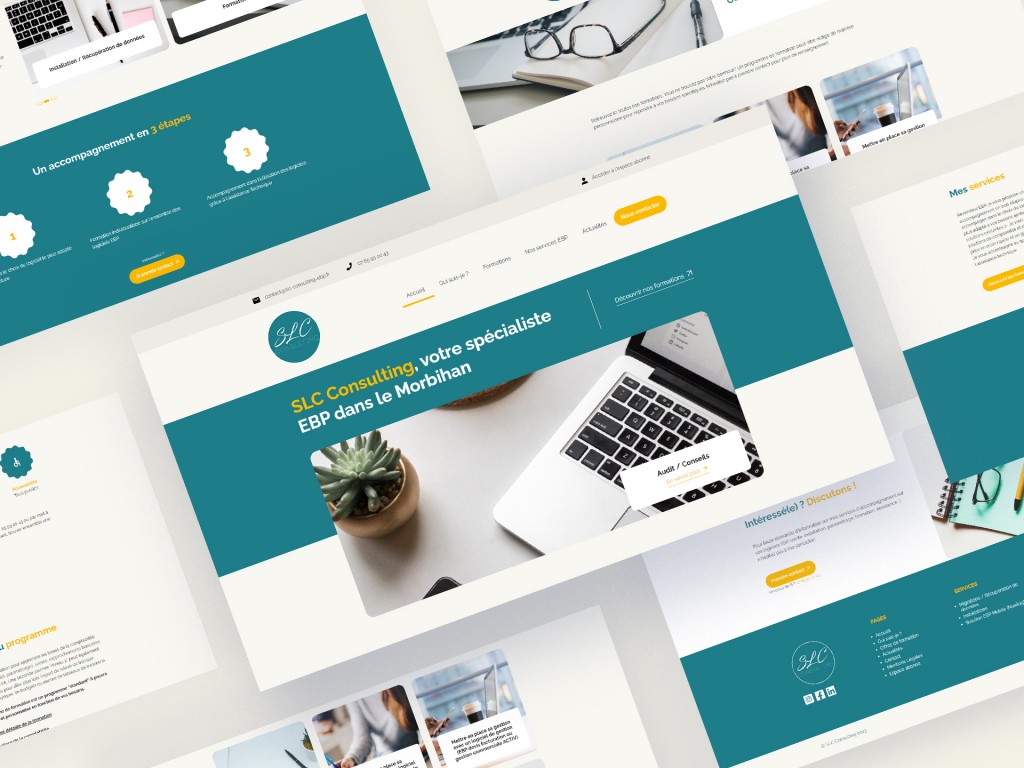 SLC Consulting souhaitait un site vitrine moderne et coloré pour présenter ses formations sur les logiciels EBP avec un espace pour ses abonnés